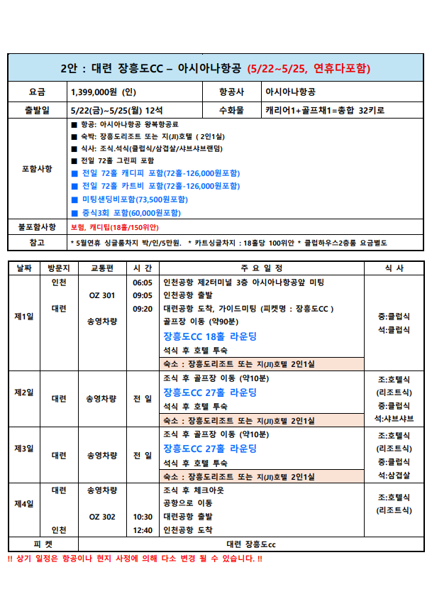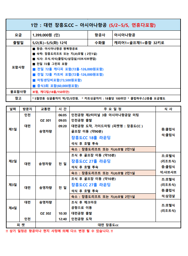 **지역,상품,골프장별로 다르게 적용될수 있습니다.(개별견적서확인)