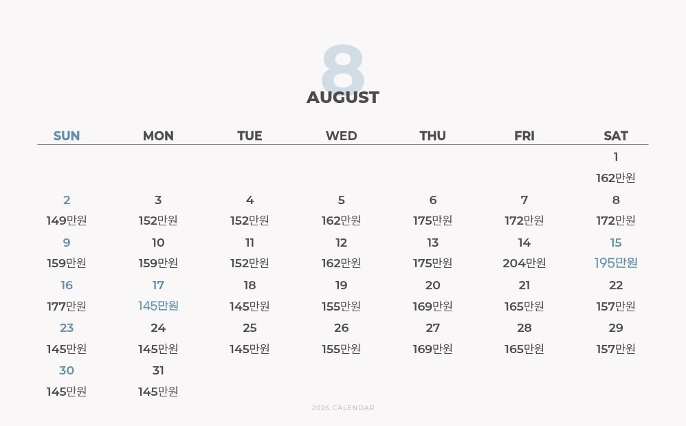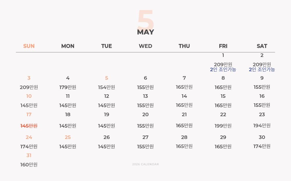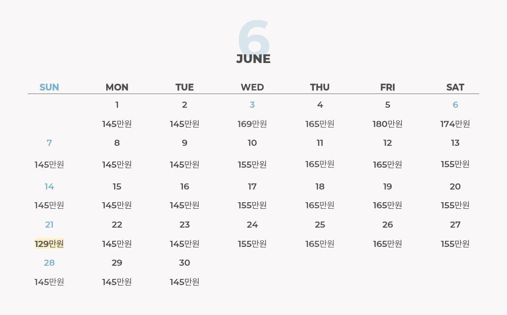 | 2026년 4월 ~ 8월까지 1인 129만원 ※요금표참고 |