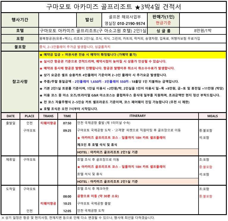 **지역,상품,골프장별로 다르게 적용될수 있습니다.(개별견적서확인)