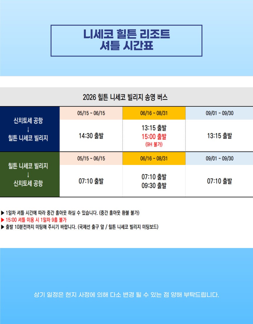 | 2~3인 주말라운드경우 추가금발생 중간일 18홀 진행시에도 동일요금 일본현지 공휴일 추가금발생 4인1조가 원칙 > 임의조인될수있음 기상악화및 천재지변시 골프장 규정에 따름 숙소 풀부킹시 동급으로 대체 |