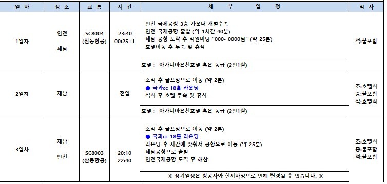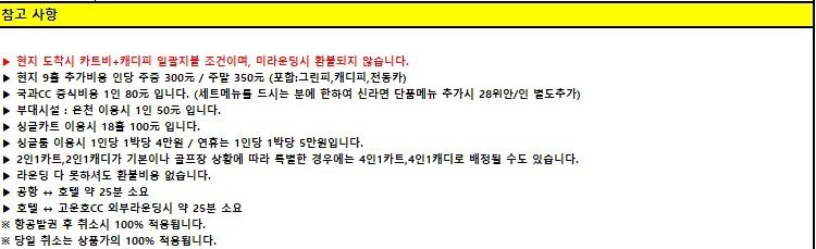 **지역,상품,골프장별로 다르게 적용될수 있습니다.(개별견적서확인)
