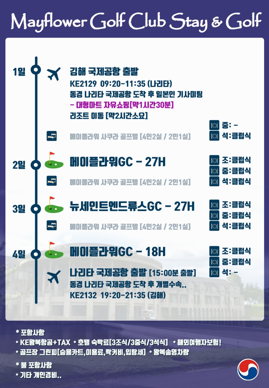 | 2026.4.1~6.30까지 일.월.화.수 인천/부산출발 1,299,000원/인 3박4일 72홀 |